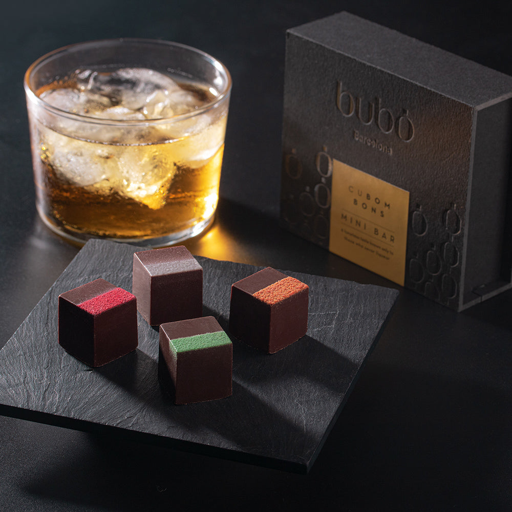 味わい深いリキュールが入った、キューブ型のボンボンショコラ4種セット。ウイスキー、ラム、テキーラ、日本酒を練り込んだ口どけなめらかなガナッシュと、ダークチョコレートの奥深さをお楽しみいただけます。 洗練されたデザインは、大切な方への贈り物や、ご自分へのご褒美にもぴったりです。
